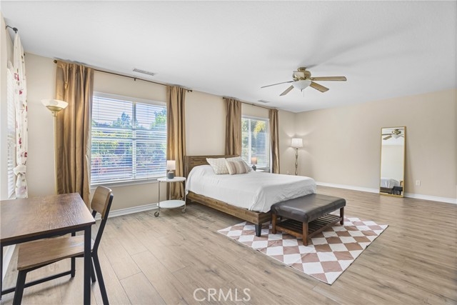 Set in the highly sought-after Murrieta Oaks Hills, where panoramic views and custom estates define the neighborhood, this modern 5-bedroom, 4-bath home stands out as one of the few cul-de-sac properties with gated RV parking and no rear neighbor. Positioned in an exclusive Mello Roos community with no HOA, it spans nearly 3,400 sq. ft. and delivers the rare blend of privacy, style, and convenience that buyers are actively seeking. Every inch of the interior has been updated with contemporary finishes, including brand-new premium German-made waterproof wood flooring and contemporary touches throughout. The versatile floor plan showcases two oversized living areas, a formal dining room, a spacious loft, and two bonus rooms ideal for home offices, studios, or personal retreats. The chef’s kitchen impresses with a large center island, upgraded appliances, refined cabinetry, and a dedicated coffee lounge. Designed for both daily living and entertainment, the family room transforms into a home theater with a ceiling-mounted projector and retractable 110" screen. Upstairs, a private balcony offers tranquil hillside views and a peaceful place to unwind. An 8.4 kW solar system with 24 Longi panels has fully offset power costs since 2022, adding long-term efficiency and value. The backyard is a standout feature—professionally designed with a classic English garden aesthetic, it provides an intimate outdoor setting perfect for gatherings or quiet evenings. The owner operated it as a high-end executive rental producing $6,630/month, presenting strong investment appeal along with its turnkey residential appeal. Additional advantages include three garages, gated RV parking, and quick access to award-winning schools, Old Town Temecula, world-class wineries, and a private hiking trail just steps away. With the owners relocating out of state, this is a rare chance to acquire a premium Murrieta Oaks Hills property at a price point not often available in this caliber of neighborhood.