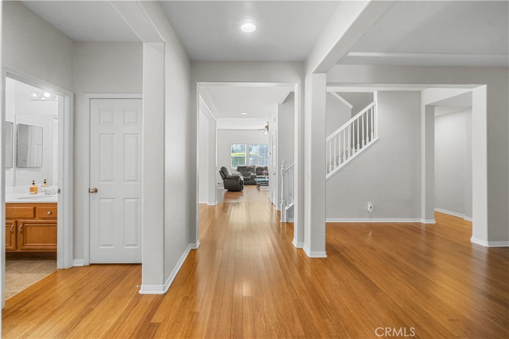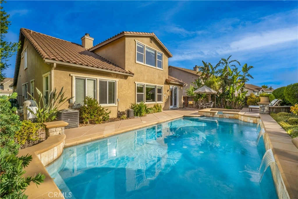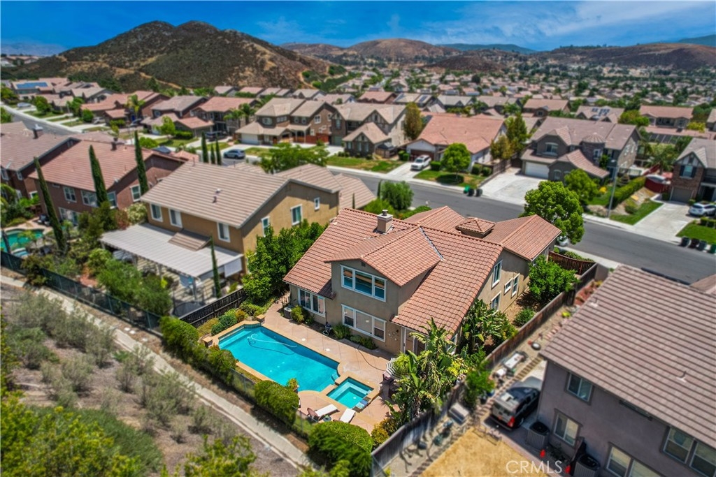 LOOKING FOR A MULTI-GEN GEM! COME SEE THIS HOME!!!! MURRIETA OAKS POOL AND SPA HOME, AMAZING FLOOR PLAN WITH DOWN STAIRS PRIMARY SUITE! NO HOA! MURRIETA SCHOOLS! There are beautiful walking trails and rolling hills throughout this well maintained and highly desirable community. 27421 Murrieta Oaks Ave features 5 bedrooms, 3 full bathrooms and a large bright and open loft! This beautiful home has so much to offer! As you walk through the front entrance, there is a charming private courtyard with a quaint fountain to welcome your visitors. Gorgeous hydrangeas line one side of the gated entrance to the courtyard. The owner just had the carpet replaced and the interior professionally painted. One of the most appealing highlights of this home is the floorplan. This multi-gen floor-plan provides privacy as the bedrooms are located in different areas of the home. On the first level, there are 3 bedrooms (which includes a spacious primary suite), a parlor, formal dinning room, laundry room, Harry Potter closet, and the kitchen that opens to the great-room with a fire place. The upstairs features an amazing loft with a view of the pool and the tranquil hillside, 2 additional spacious bedrooms and a full bathroom. THIS IS A HIGHLY SOUGHT AFTER FLOOR PLAN WITH 3 BEDROOMS ON THE LOWER LEVEL! As you walk outside into the private backyard, you will find a dazzling salt-water pool and a spa to enjoy year round! There are a couple of citrus trees, birds of paradise and hardy ice plants which have an incredibly stunning bloom twice a year. There are no rear neighbors as you are backed up against a beautiful greenbelt that the city of Murrieta waters and maintains. This is a great entertainers backyard, quiet, peaceful and very zen. The property is minutes from the Temecula Wineries and Old Town Temecula. It is also very conveniently located to Costco, hospitals, restaurants, movie theaters, shopping, both 215 and 15 freeways, and right around the corner from the elementary school! To top it off, it is located 2 exits from what is be the new Trader Joe's in Murrieta! Come make this wonderful home yours today!