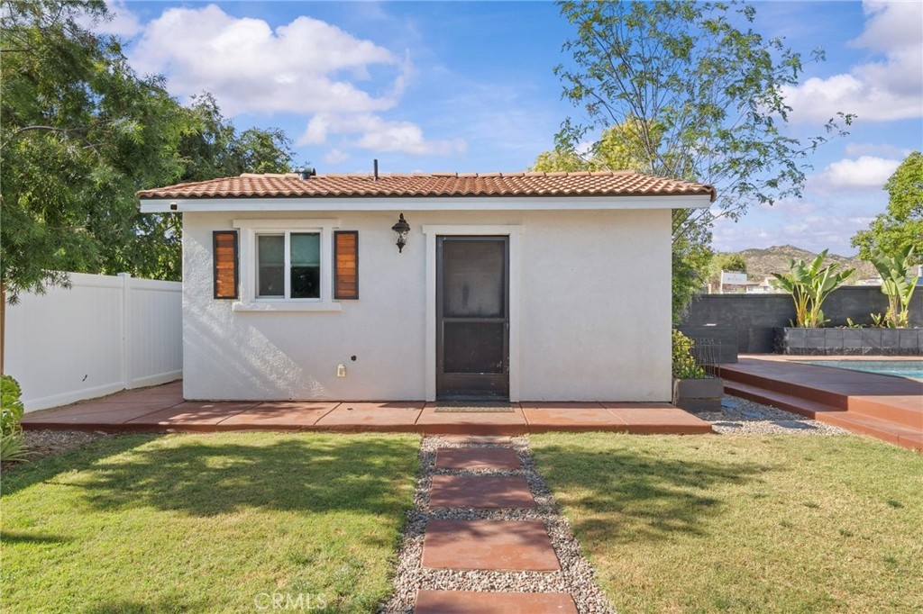 YOU HAVE ARRIVED! Stunning remodeled solar powered pool home with a detached ADU and NO HOA! Welcome to 27497 Yellow Wood Way in the highly sought-after Murrieta Oaks community, offering the perfect mix of comfort, function, and flexibility with a 27-panel solar system, a detached studio ADU with income potential, and a private office with its own exterior entrance ideal for a home-based business. Inside, you’re greeted by a grand entry, new laminate wood flooring, fresh interior paint, and premium wood shutters throughout. The upgraded kitchen features new granite countertops, a large island with seating, farmhouse sink, and double ovens, making it a great space for both everyday living and entertaining. Upstairs you’ll find a custom loft with theater room potential, perfect for movie nights, along with updated bathrooms throughout. The layout is highly desirable with a full bedroom and bathroom downstairs and a spacious 3-car tandem garage that is oversized and can nearly fit four cars. The backyard is built for entertaining with a newly lined pool and plenty of space to relax or host. With energy efficiency, multi-gen living potential, and rental income opportunities all in one, this home stands out in today’s market. Located near top-rated schools with no HOA, it’s rare to find a property with this level of upgrades and versatility in such a great neighborhood, so don’t miss your chance to see it in person.