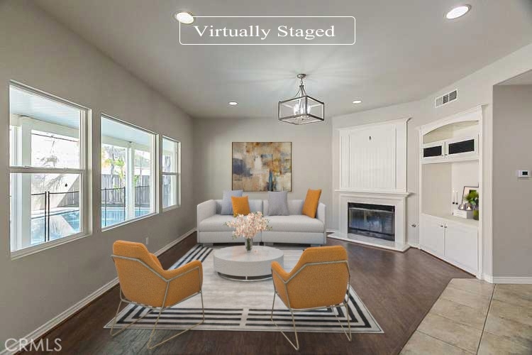 This Murrieta two-story corner home offers an in-ground pool, a patio, granite countertops, and a three-car garage. This home has been virtually staged to illustrate its potential.