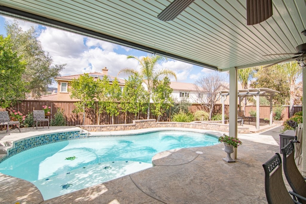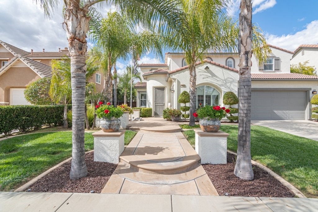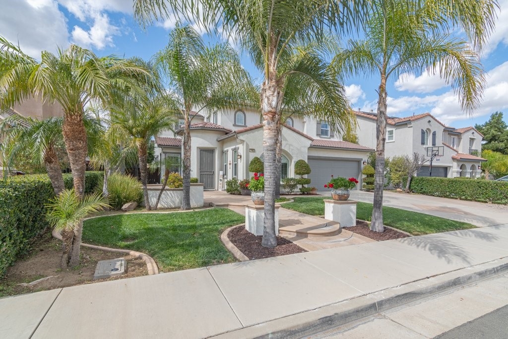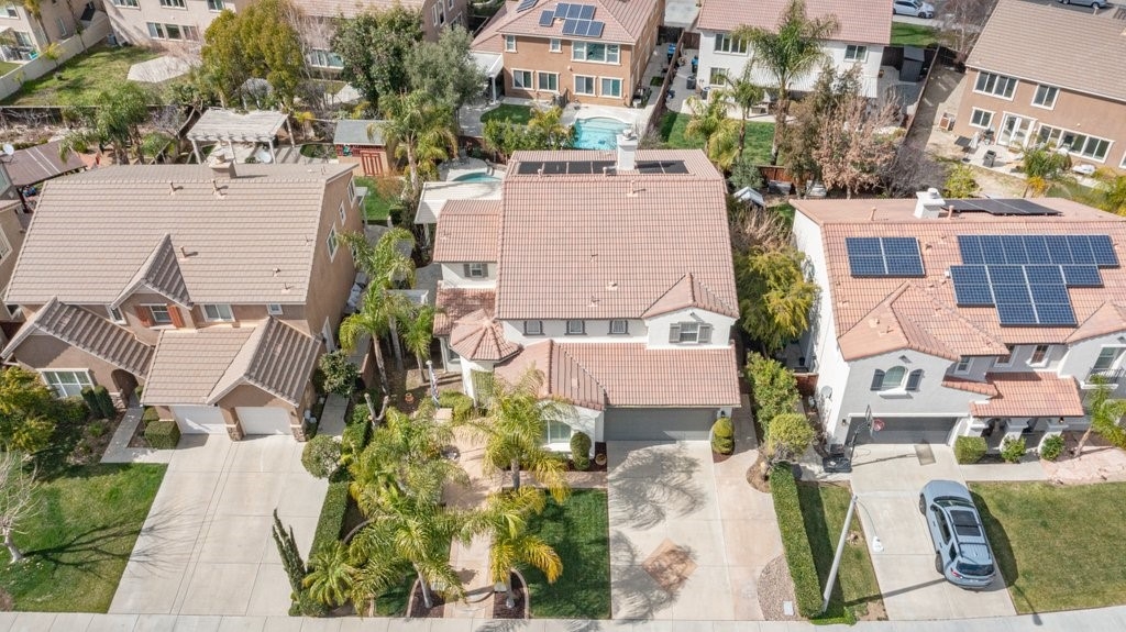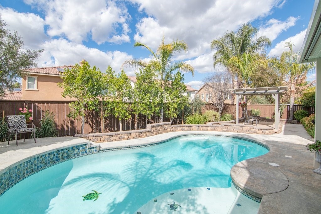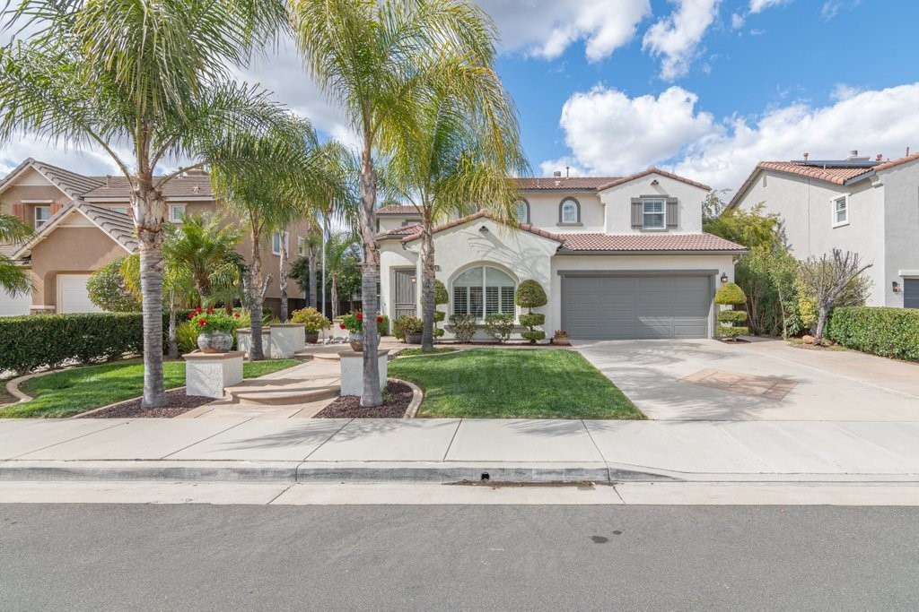 Stunning 5-Bedroom Pool Home nestled in the desirable Murrieta Oaks neighborhood! This 3,238 sq. ft. haven blends luxury and comfort effortlessly. Featuring five spacious bedrooms (four upstairs & one downstairs) and three beautifully renovated bathrooms, this home is designed for modern living. The renovated gourmet kitchen steals the show with leathered marble countertops, ample shaker cabinets for storage, a massive island with a farmhouse sink, a double oven, a five-burner cooktop, a microwave, a refrigerator, and a large walk-in pantry—perfect for the kitchen connoisseur. The primary suite upstairs is a sanctuary, offering a jaw-dropping renovated bathroom with an amazing soaking tub, a separate modern shower, quartz countertops, and a generous walk-in closet with custom cabinetry. Also upstairs are three more bedrooms and a large loft with office space. Can you say space? The upstairs guest bathroom was also renovated with matching leathered marble countertops and shaker cabinetry to complement the kitchen. European wood-like plank tile floors grace the downstairs and upstairs bathrooms, while plush carpet warms the upper level. Every window features white plantation shutters for style and privacy. A welcoming path leads to the front door, opening into a unique round turret entryway. Cathedral ceilings soar overhead as you step into the living and dining rooms, which flow seamlessly into the beautifully renovated kitchen and cozy family room with a fireplace. Walk through the large downstairs laundry room, featuring an oversized deep sink and space for coats and backpacks, into the HUGE 3-car tandem garage—much deeper than most, reaching 40 feet at its deepest point, perfect for storage or projects. Step outside to your private backyard oasis, complete with a saltwater pool, solar-heated via rooftop panels—an eco- and budget-friendly feature that extends the swimming season. The backyard also boasts two separate patio areas for entertaining and a large storage shed. This home is just a short walk to Antelope Hills Elementary and a quick drive to award-winning Murrieta Mesa High School. Conveniently located off the Clinton Keith exit of the 215 Freeway, you'll be near Costco, The Home Depot, Target, and top medical facilities like Kaiser, Loma Linda, Rancho Springs & Inland Valley Hospitals. This clean, cozy gem is ready to welcome its next owners!
