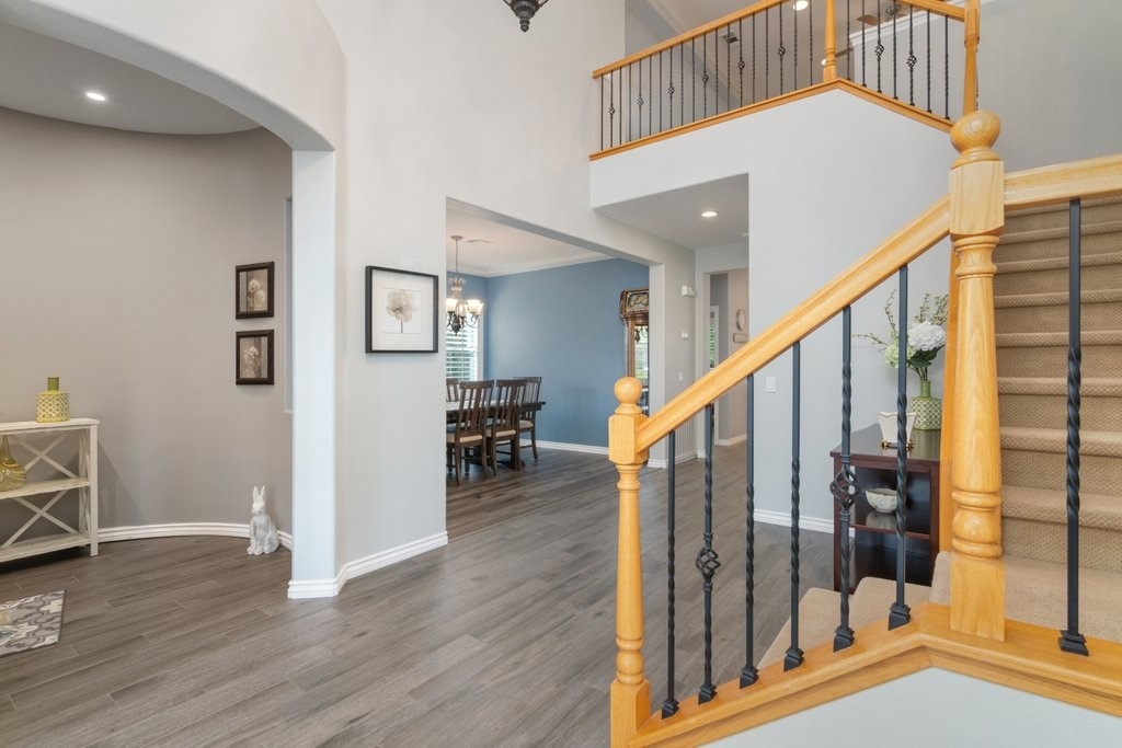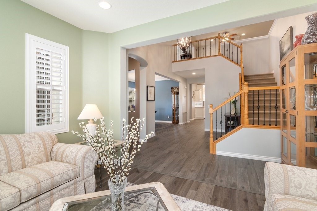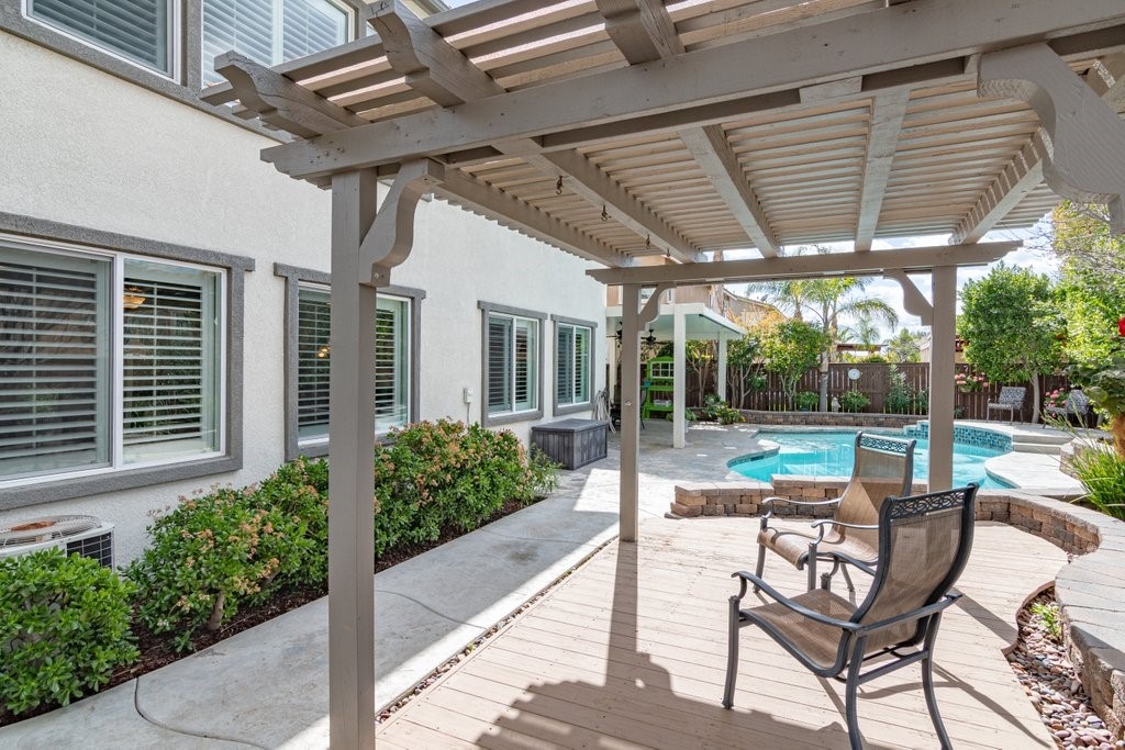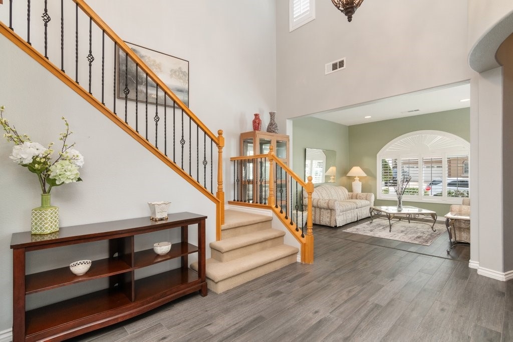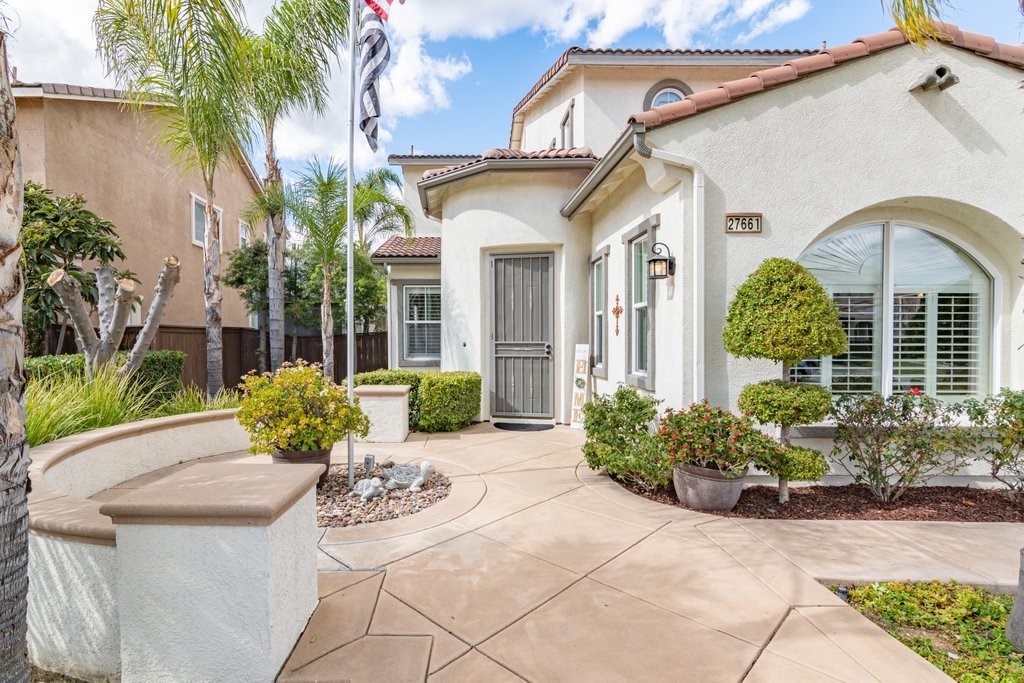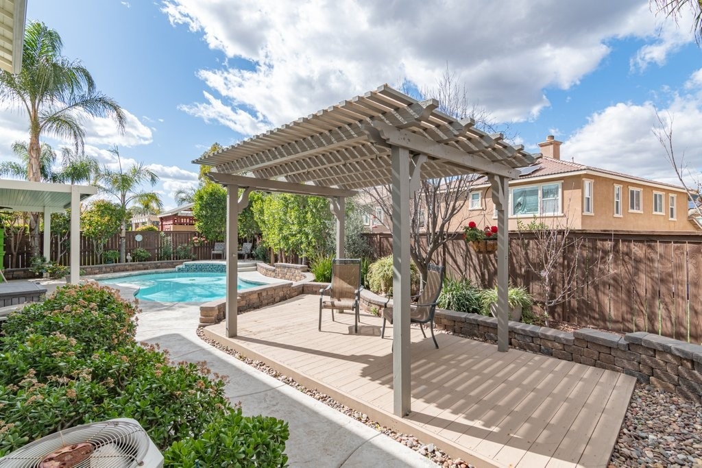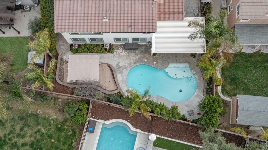 Stunning 5-Bedroom Pool Home nestled in the desirable Murrieta Oaks neighborhood! This 3,238 sq. ft. haven blends luxury and comfort effortlessly. Featuring five spacious bedrooms (four upstairs & one downstairs) and three beautifully renovated bathrooms, this home is designed for modern living. The renovated gourmet kitchen steals the show with leathered marble countertops, ample shaker cabinets for storage, a massive island with a farmhouse sink, a double oven, a five-burner cooktop, a microwave, a refrigerator, and a large walk-in pantry—perfect for the kitchen connoisseur. The primary suite upstairs is a sanctuary, offering a jaw-dropping renovated bathroom with an amazing soaking tub, a separate modern shower, quartz countertops, and a generous walk-in closet with custom cabinetry. Also upstairs are three more bedrooms and a large loft with office space. Can you say space? The upstairs guest bathroom was also renovated with matching leathered marble countertops and shaker cabinetry to complement the kitchen. European wood-like plank tile floors grace the downstairs and upstairs bathrooms, while plush carpet warms the upper level. Every window features white plantation shutters for style and privacy. A welcoming path leads to the front door, opening into a unique round turret entryway. Cathedral ceilings soar overhead as you step into the living and dining rooms, which flow seamlessly into the beautifully renovated kitchen and cozy family room with a fireplace. Walk through the large downstairs laundry room, featuring an oversized deep sink and space for coats and backpacks, into the HUGE 3-car tandem garage—much deeper than most, reaching 40 feet at its deepest point, perfect for storage or projects. Step outside to your private backyard oasis, complete with a saltwater pool, solar-heated via rooftop panels—an eco- and budget-friendly feature that extends the swimming season. The backyard also boasts two separate patio areas for entertaining and a large storage shed. This home is just a short walk to Antelope Hills Elementary and a quick drive to award-winning Murrieta Mesa High School. Conveniently located off the Clinton Keith exit of the 215 Freeway, you'll be near Costco, The Home Depot, Target, and top medical facilities like Kaiser, Loma Linda, Rancho Springs & Inland Valley Hospitals. This clean, cozy gem is ready to welcome its next owners!