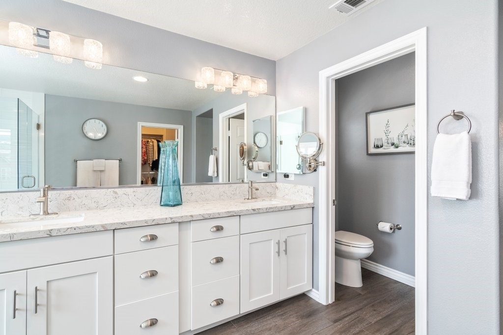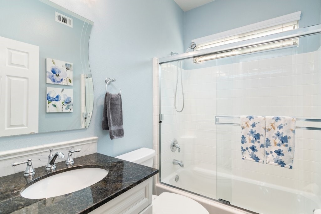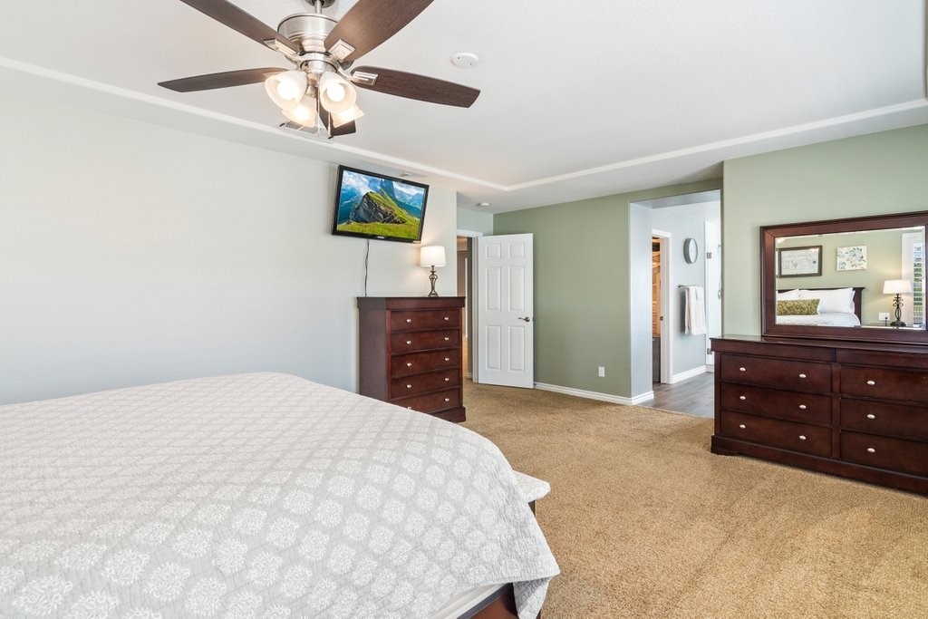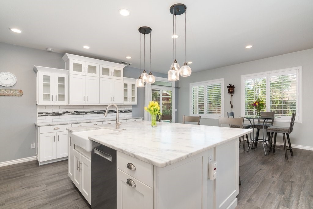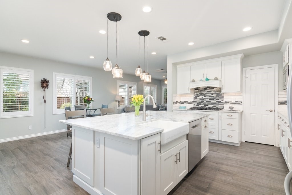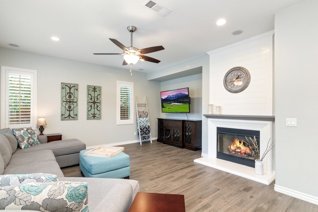 Stunning 5-Bedroom Pool Home nestled in the desirable Murrieta Oaks neighborhood! This 3,238 sq. ft. haven blends luxury and comfort effortlessly. Featuring five spacious bedrooms (four upstairs & one downstairs) and three beautifully renovated bathrooms, this home is designed for modern living. The renovated gourmet kitchen steals the show with leathered marble countertops, ample shaker cabinets for storage, a massive island with a farmhouse sink, a double oven, a five-burner cooktop, a microwave, a refrigerator, and a large walk-in pantry—perfect for the kitchen connoisseur. The primary suite upstairs is a sanctuary, offering a jaw-dropping renovated bathroom with an amazing soaking tub, a separate modern shower, quartz countertops, and a generous walk-in closet with custom cabinetry. Also upstairs are three more bedrooms and a large loft with office space. Can you say space? The upstairs guest bathroom was also renovated with matching leathered marble countertops and shaker cabinetry to complement the kitchen. European wood-like plank tile floors grace the downstairs and upstairs bathrooms, while plush carpet warms the upper level. Every window features white plantation shutters for style and privacy. A welcoming path leads to the front door, opening into a unique round turret entryway. Cathedral ceilings soar overhead as you step into the living and dining rooms, which flow seamlessly into the beautifully renovated kitchen and cozy family room with a fireplace. Walk through the large downstairs laundry room, featuring an oversized deep sink and space for coats and backpacks, into the HUGE 3-car tandem garage—much deeper than most, reaching 40 feet at its deepest point, perfect for storage or projects. Step outside to your private backyard oasis, complete with a saltwater pool, solar-heated via rooftop panels—an eco- and budget-friendly feature that extends the swimming season. The backyard also boasts two separate patio areas for entertaining and a large storage shed. This home is just a short walk to Antelope Hills Elementary and a quick drive to award-winning Murrieta Mesa High School. Conveniently located off the Clinton Keith exit of the 215 Freeway, you'll be near Costco, The Home Depot, Target, and top medical facilities like Kaiser, Loma Linda, Rancho Springs & Inland Valley Hospitals. This clean, cozy gem is ready to welcome its next owners!
