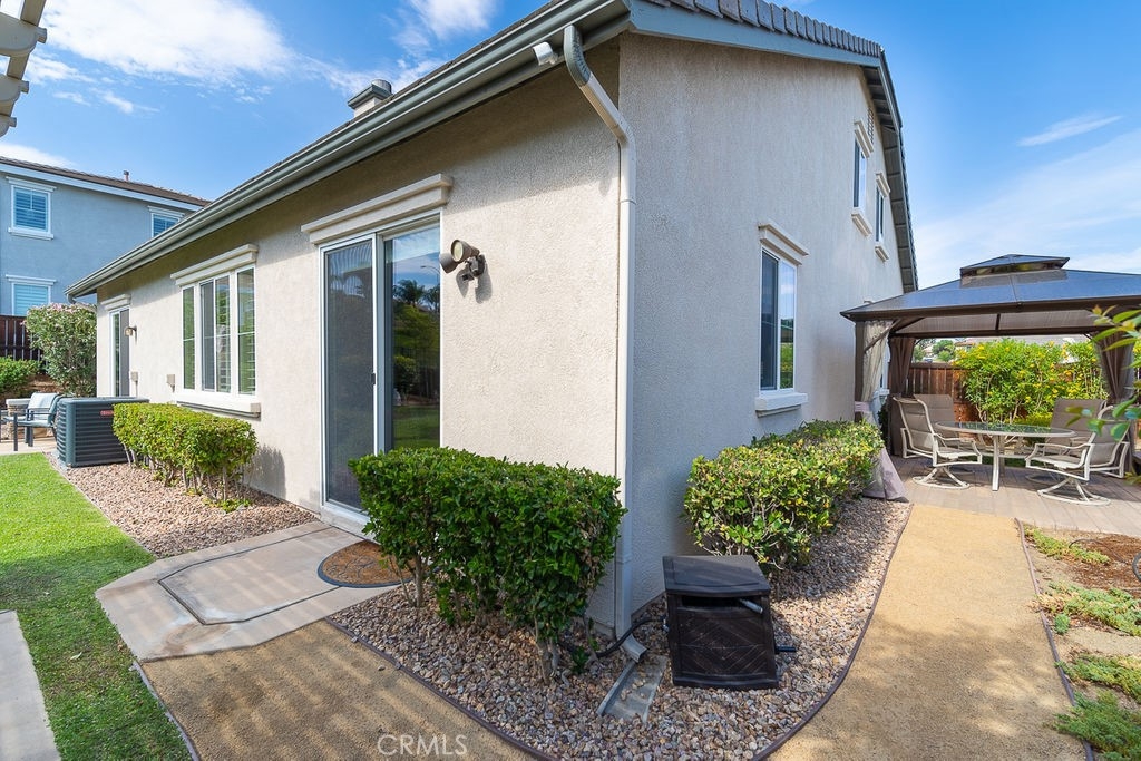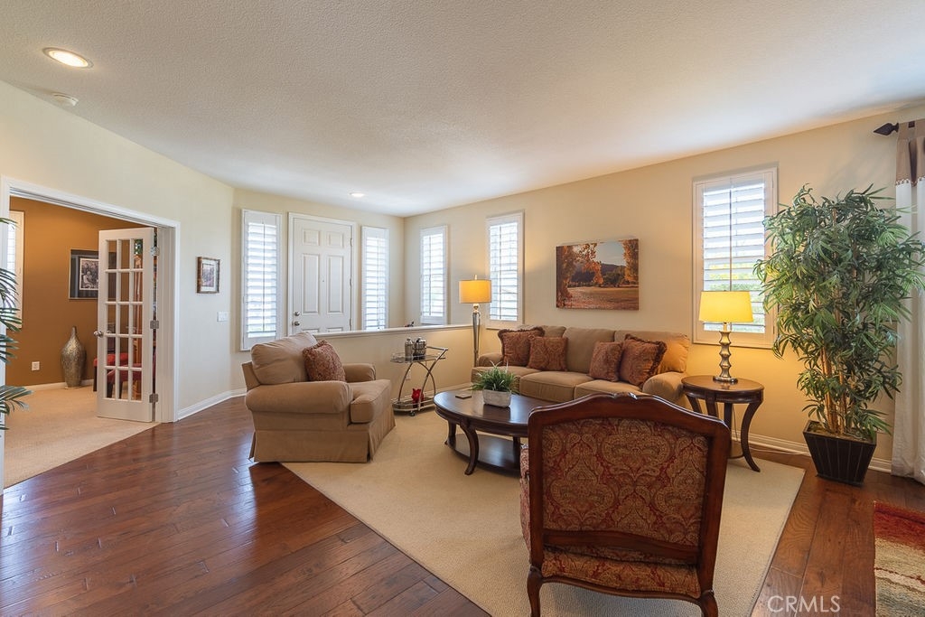 BEAUTIFUL FORMER MODEL HOME on a quiet cul-de-sac in Murrieta Oaks. NO NEIGHBOR behind you & VIEWS to Santa Rosa Plateau. DESIGNER UPGRADES include RICH WOOD FLOORING, PLANTATION SHUTTERS & CUSTOM BUILT-INS in many rooms. SOARING CEILINGS, arch top doorways & upgraded lighting add to the elegance. Formal living & dining plus a SPACIOUS FAMILY ROOM with fireplace & built-in entertainment wall. The ISLAND KITCHEN boasts GRANITE, STAINLESS APPLIANCES (some nearly new) DOUBLE OVEN, 5 BURNER STOVE, BUTLER'S PANTRY plus bar seating & breakfast nook. The SPACIOUS PRIMARY BEDROOM SUITE is downstairs & opens to its own patio. SUMPTUOUS TILED bath with dual sinks, soaking tub, separate shower & CUSTOMIZED WALK-IN CLOSET with built-ins. An office with a private bath is downstairs & the upper floor offers 2 more bedrooms, a full bath, a loft family room & another office area with built-in desk. You will love the DRAMATIC FRONT STEPS leading to a ENTRY PATIO with STONE VENEER. Additional OUTDOOR LIVING SPACE includes a BUILT-IN GAS BBQ with alumawood type cover, a VERY PRIVATE CABANA COVERED PATIO in side yard & a patio off the primary bedroom. The PROFESSIONAL LANDSCAPING is EASY CARE. DUAL SYSTEM AC is appx 2 years old, exterior paint in 2019, water heater in 2018 & newish carpeting. Indoor laundry room with cabinets. Garage has finished walls, finished floor & room for 2 cars plus an ALCOVE with WORK AREA & lots of storage. Located in a QUIET AREA OF Murrieta Oaks with NO HOA. CALL TODAY to make this SHOWCASE HOME yours.