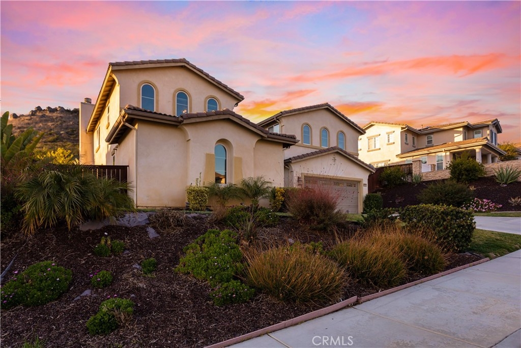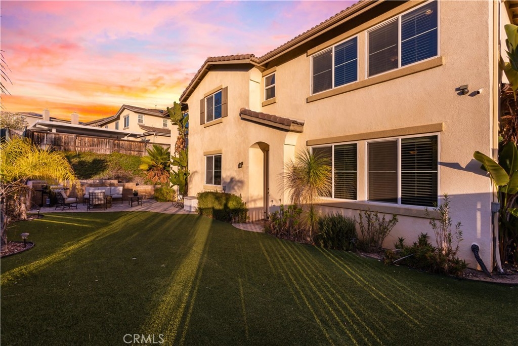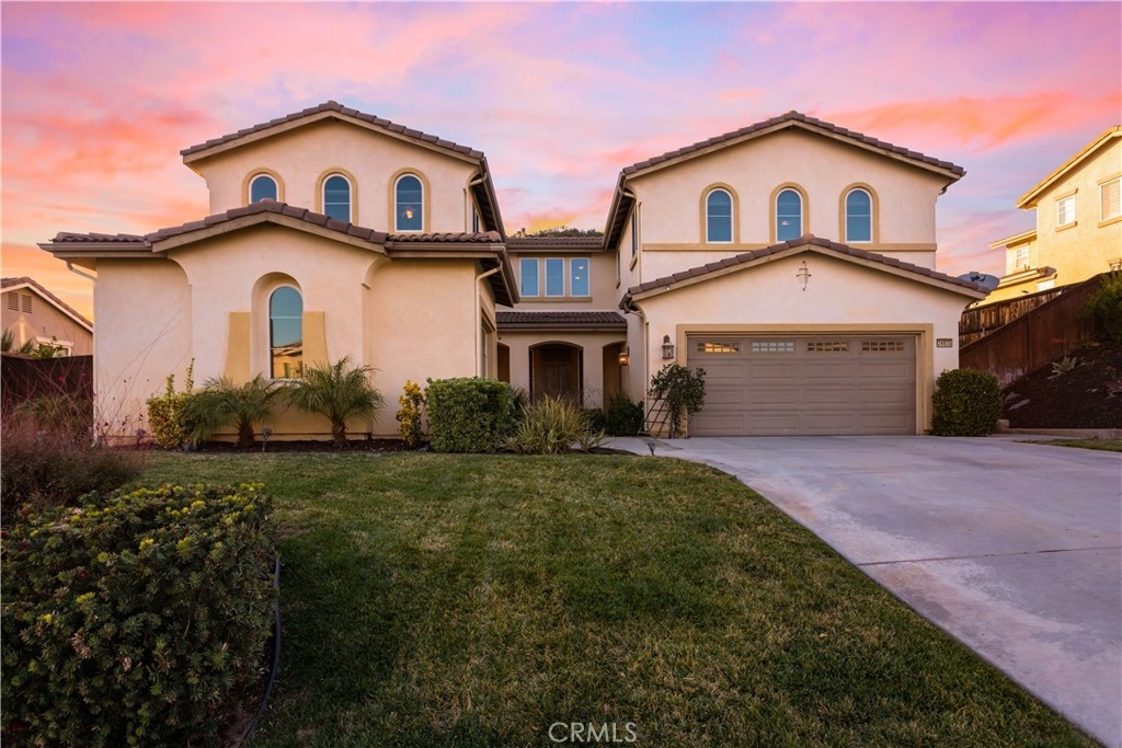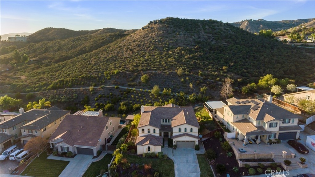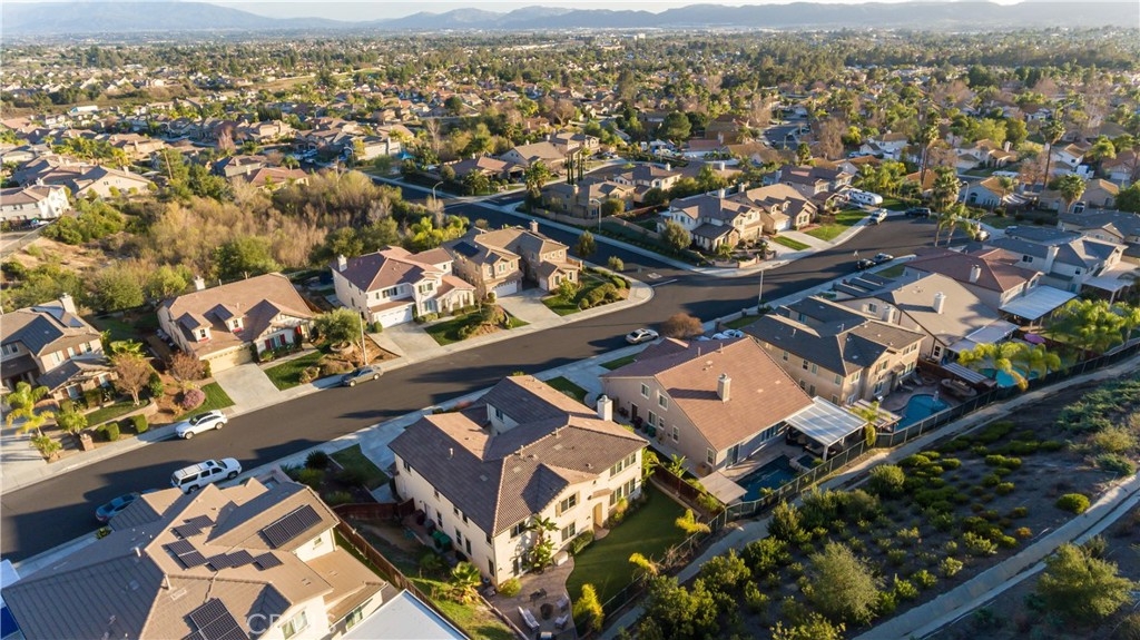 Executive style living located in the desirable Murrieta Oaks Community. This 5/6 bedrooms, 4 full bath home has been well maintained and is move in ready. When entering the home you are greeted by the formal entry and beautiful wooden staircase. Located on the lower level of the home are the formal living room, formal dining room, Family room with a fireplace, Office, Large Bedroom, Full bathroom, Laundry room and kitchen with nook. The large kitchen has granite counter tops, stainless steel appliances, double oven, a butlers pantry, a walk in pantry, plenty of counter and cabinet space. This kitchen is an entertainers dream. Located on the upper level of the home is the large main bedroom with a double door entry, retreat with a fireplace, main suite with double sinks, separate shower, soaker tub, large double walk-in closet and views of the rolling hills. Also located on the upper level are 3 additional bedrooms and 2 additional bathrooms. There is also a large bonus room that could used as the 6th bedroom, man cave, game room, etc. All windows are covered with custom wood blinds. The home has stone tile flooring and plush carpeting. The backyard is professionally landscaped and boast a host of fruit trees, grape vines and artificial grass. There are no neighbors behind this home to obstruct the beautiful views of the rolling hills and beautiful sunset.