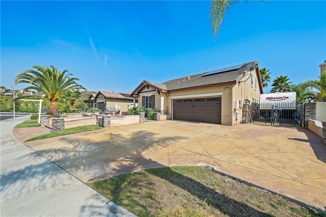 RV parking and NO Hoa!!! Welcome to this wonderful family home that features four bedrooms and two and half bathrooms. The owners suit is located downstairs along with an additional bedroom and half bathroom. The upper level has a loft and study area with two more additional bedrooms and a bathroom. The kitchen has double ovens and granite countertops, which opens up to the large family room great for gatherings. Outside has a spa and gazebo for relaxing and looking at the city light with no rear neighbors. You have plenty of space to park your RV or boat. The home has solar with a battery backup system. Close to the 215 fwy for an easy commute.